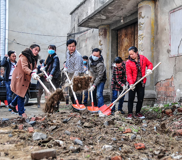 黨員干部參加新閘社區(qū)衛(wèi)生整治活動(dòng)。紀(jì)云霞攝