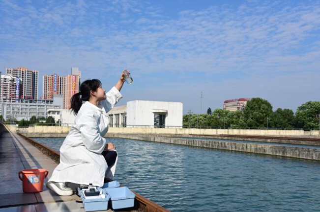 堅持每小時檢測,確保出廠水水質(zhì)。紀云霞攝