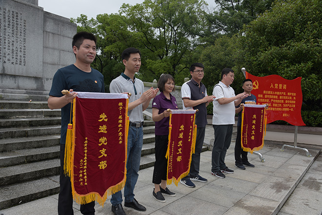 “我志愿加入中國共產(chǎn)黨……”一陣陣鏗鏘有力的宣誓聲在洪湖市湘卾西蘇區(qū)革命烈士陵園烈士紀念碑前回響,為慶祝中國共產(chǎn)黨建黨96周年,公司全體黨員170余人于6月17日、6月24日分批前往洪湖市開展“七.一”革命傳統(tǒng)教育活動。在洪湖市革命烈士陵園紀念碑前,現(xiàn)場對公司2016-2017年度先進黨支部、優(yōu)秀黨員及黨務(wù)工作者進行了表彰,管維公司黨支部等3個黨支部分別榮獲“先進黨支部”稱號,黃先林等18名同志被授予“優(yōu)秀黨員”榮譽稱號,紀云霞等4位同志被授予“優(yōu)秀黨務(wù)工作者”榮譽稱號。公司黨委書記、董事長余曦對取得榮譽的集體、個人表示了肯定,勉勵大家以受表彰的先進集體和個人為榜樣,不忘初心,充分發(fā)揚黨組織戰(zhàn)斗堡壘作用及黨員先鋒模范作用,勇往直前、一如既往為公司供水工作作出努力。隨后,2017年新發(fā)展的18名預(yù)備黨員在烈士紀念碑前莊嚴地舉起右手宣誓、老黨員面對黨旗重溫了入黨誓詞,進一步引導(dǎo)大家牢記黨員身份,強化黨員意識。表彰大會后,全體黨員跟隨園區(qū)講解員一起瞻仰革命烈士紀念館,傾聽講解員講述洪湖這塊紅色土地上英雄先烈們的革命事跡。