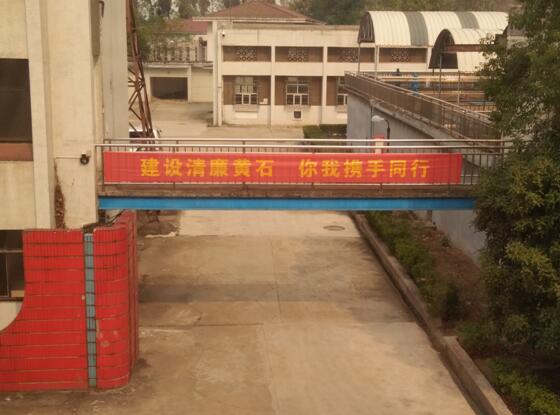 圖為LED屏正在滾動播放宣傳標(biāo)語