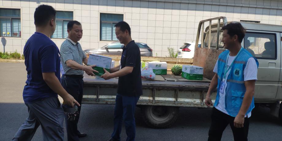 8月5日—6日,公司開展高溫慰問活動(dòng),公司領(lǐng)導(dǎo)余曦、張昌銳等分別赴14個(gè)基層單位及重點(diǎn)工程項(xiàng)目工地,為烈日酷暑下依舊奮戰(zhàn)在一線的廣大干部職工送去綠豆、礦泉、西瓜、飲料等夏季防暑降溫物資。