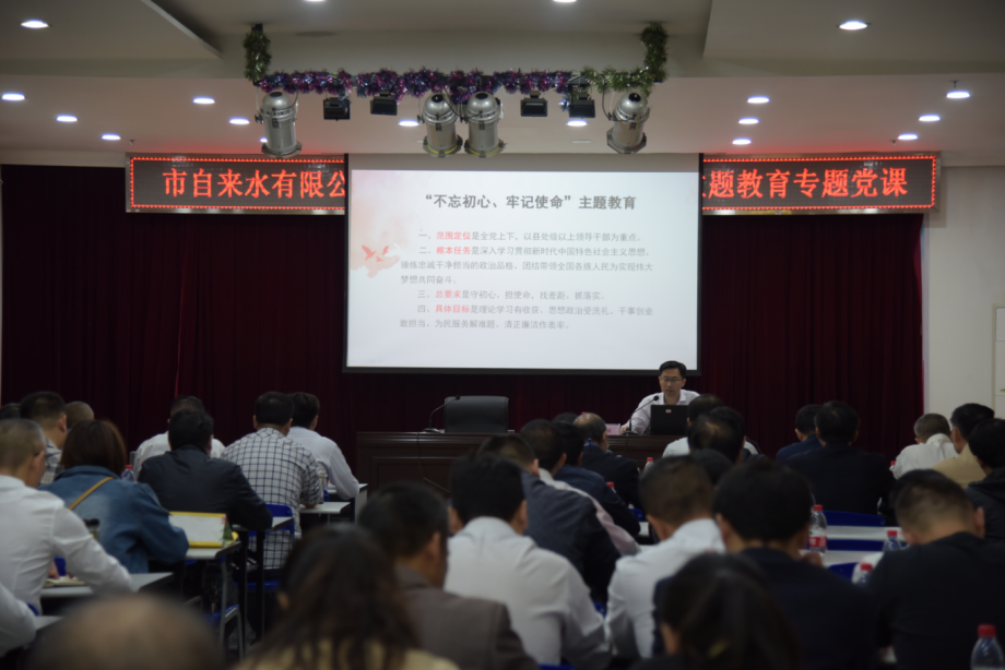 余曦提到,在新時(shí)代的背景下,國(guó)企黨員應(yīng)將理論與實(shí)踐結(jié)合,對(duì)初心和使命尋根問本,扎實(shí)做到信念、政治、責(zé)任、能力、作風(fēng)“五個(gè)過硬”,以“不忘初心、牢記使命”的政治清醒,全力做好新時(shí)代供水工作。公司黨委副書記、總經(jīng)理張昌銳主持并強(qiáng)調(diào),公司各單位主要領(lǐng)導(dǎo)干部作為關(guān)鍵少數(shù),要通過集中學(xué)習(xí)的形式,領(lǐng)悟主題教育的重大意義,引導(dǎo)廣大黨員不折不扣貫徹落實(shí)相關(guān)要求,確保主題教育扎實(shí)推進(jìn),取得實(shí)質(zhì)成效。公司領(lǐng)導(dǎo)班子成員、各基層單位班子成員及機(jī)關(guān)全體黨員近100人參加。