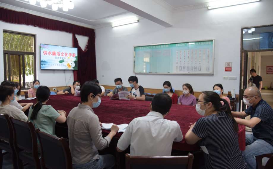 為縱深推進國有企業(yè)“十進十建”活動,爭創(chuàng)法紀宣教建設(shè)示范陣地,打造“廉潔供水”品牌。公司紀委組織編寫的《供水廉潔文化手冊》經(jīng)廣泛征求員工意見,起于認同、成于規(guī)范,已定初稿。該《手冊》理念行為識別系統(tǒng)確定了供水廉潔核心理念,規(guī)范了各崗位廉潔從業(yè)、優(yōu)質(zhì)服務(wù)行為,為安全生產(chǎn)、優(yōu)質(zhì)供水、服務(wù)社會奠定了政治基礎(chǔ)和紀律保障。圖為公司廉潔優(yōu)質(zhì)服務(wù)示范區(qū)·涼亭山水廠召開《供水廉潔文化手冊》征求意見會,干部職工正在提出修改建議。