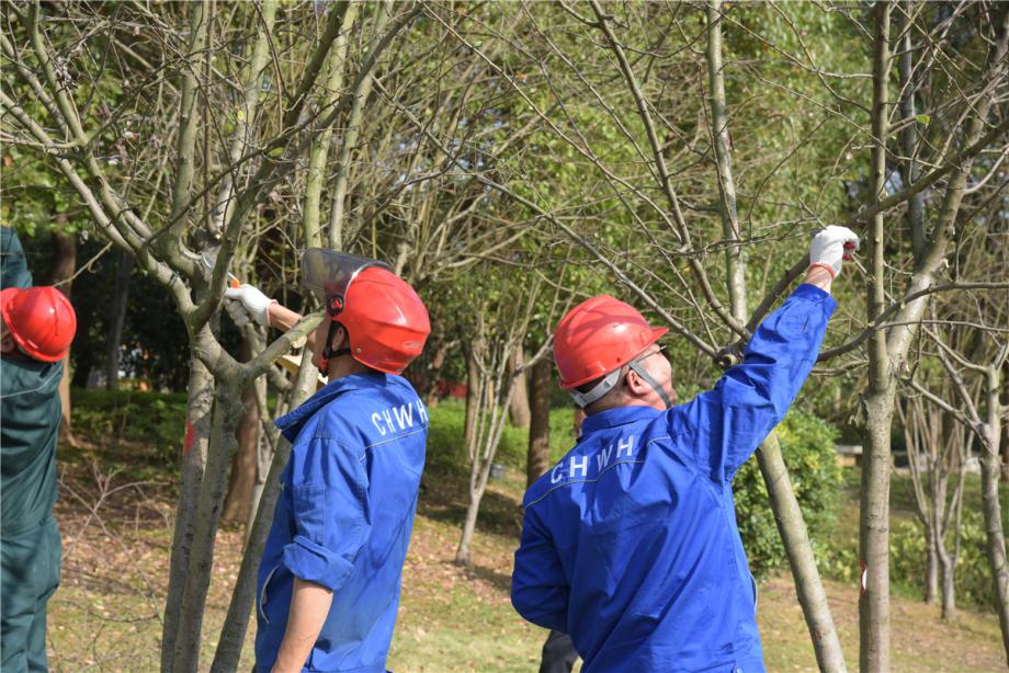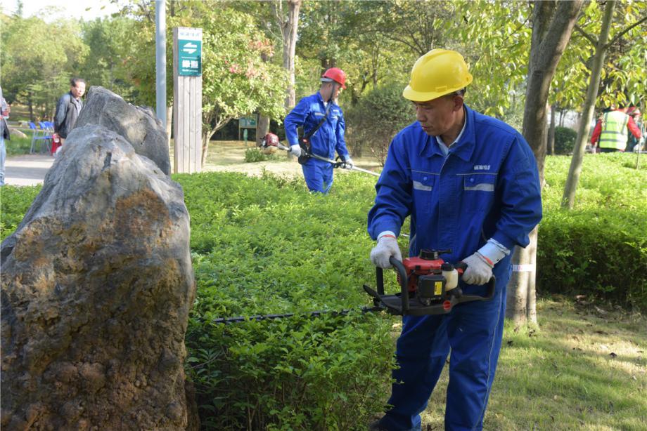 下午,園林綠化實操比賽在磁湖岸邊綠化帶舉行,11名選手經過抽簽,隨機分配比賽樹木,進行喬木、綠籬、灌木等修剪項目的比拼。