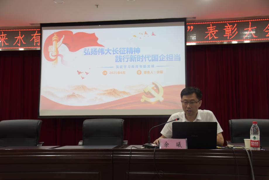 公司黨委書記、董事長(zhǎng)余曦同志以《弘揚(yáng)偉大長(zhǎng)征精神 踐行新時(shí)代國企擔(dān)當(dāng)》為題講授黨課,生動(dòng)的回顧了長(zhǎng)征的宏偉歷程,從實(shí)事求是、密切聯(lián)系群眾、艱苦奮斗、愛國愛人民等四個(gè)方面深刻剖析了長(zhǎng)征精神內(nèi)涵,并結(jié)合公司工作實(shí)際,強(qiáng)調(diào):一是要堅(jiān)定理想信念,踐行初心使命;二是堅(jiān)持艱苦奮斗,全力保障民生;三是堅(jiān)持實(shí)事求是,深化改革轉(zhuǎn)型;四是深化作風(fēng)建設(shè),永葆黨員本色。