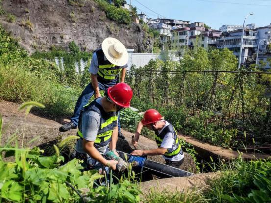 山頂距離城市供水主管網(wǎng)較遠(yuǎn),私房間間隔距離不一,通行僅靠石階步道,施工條件受限,市自來水有限公司根據(jù)現(xiàn)狀,決意在山下鳳凰山隧道旁DN160的PE管道上增加了一條200米的DN32PE補(bǔ)水管。7月16日,供水人山上山下兵分兩路,同時(shí)實(shí)施管道安裝,石階陡峭,他們肩挑手扛運(yùn)送材料,烈日炙烤,大家在驕陽下?lián)]汗安裝。從清晨6時(shí)許至正午11時(shí),兩組人一鼓作氣,順利碰通供水管,山頂居民打開水龍頭,又用上清亮潔凈的自來水,恢復(fù)了正常生活。