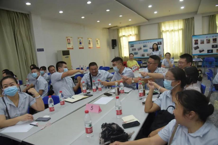 理解責(zé)任與忠誠、做到愛崗敬業(yè),既是滿足“孩子面包自由”的生活需求,也是實現(xiàn)自我價值提升的途徑,更有著滿足全市市民用水需求的重要意義。來自知書習(xí)禮(黃石)文化傳播有限公司的老師諄諄引導(dǎo)參與人員認(rèn)知工作的意義、崗位的責(zé)任。職工們分組圍坐,組建團隊,為團隊冠名,選出心儀的領(lǐng)隊,在“移花接木”的小游戲中與隊友開始熟絡(luò),踴躍搶答老師提出的問題,為團隊爭奪到獎分歡呼雀躍,課堂氣氛活躍。