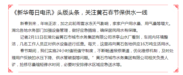 “水務(wù)集團已經(jīng)備足應(yīng)急處置物資材料,供水保障人員、熱線服務(wù)人員、搶修人員嚴格實施24小時值班值守制度,”該集團安全生產(chǎn)部門人員表示,“集團對所屬各廠站實施全時監(jiān)測,科學調(diào)度,嚴格水質(zhì)檢測監(jiān)控,確保冰凍天氣供水安全”。