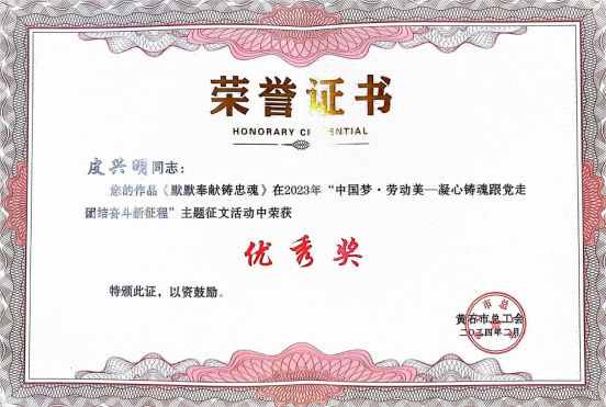 經(jīng)專家組評議,王家里水廠職工皮興明的“默默奉獻(xiàn)鑄忠魂”榮獲優(yōu)秀獎。