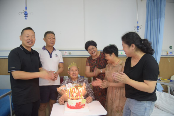 “祝您生日快樂(lè)……”9月14日,溫馨歡快的生日歌在醫(yī)院響起,市水務(wù)集團(tuán)工會(huì)主席石碧峰同志帶隊(duì)看望慰問(wèn)市自來(lái)水公司離休干部周存榮,慶祝他百歲壽誕,送上美好祝福。