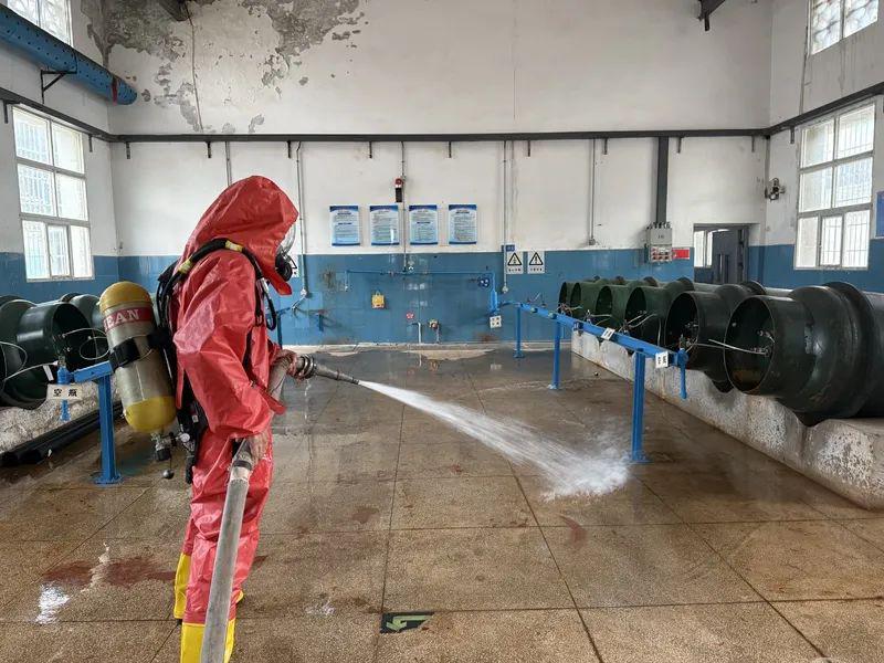 集團(tuán)應(yīng)急小組抵達(dá)后,總指揮長(zhǎng)統(tǒng)籌協(xié)調(diào),各小組分工明確:搶險(xiǎn)分隊(duì)將泄漏鋼瓶吊入堿池,分公司分隊(duì)用水槍稀釋氯氣并排除吸氯裝置故障,警戒組擴(kuò)大疏散范圍,醫(yī)療救護(hù)組與物資保障組做好現(xiàn)場(chǎng)保障。經(jīng)多組協(xié)作,加氯間氯氣濃度降至安全值。最后,宣布解除應(yīng)急響應(yīng),演練達(dá)到預(yù)期目標(biāo)。