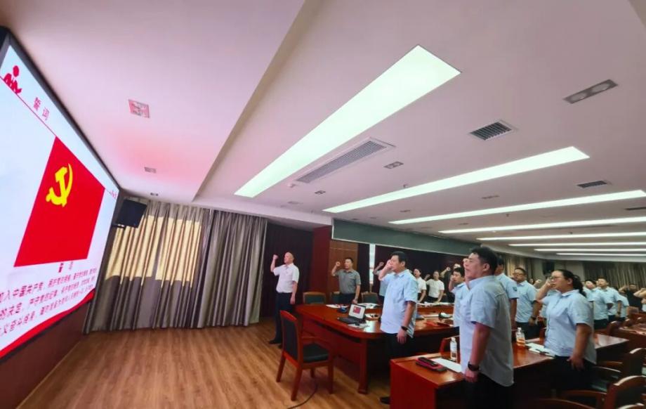 在主題黨日環(huán)節(jié),全體黨員莊嚴(yán)重溫入黨誓詞,集體誦讀了《中國共產(chǎn)黨章程》中關(guān)于黨員義務(wù)的內(nèi)容,進(jìn)一步強(qiáng)化了黨員的身份意識和責(zé)任擔(dān)當(dāng)。